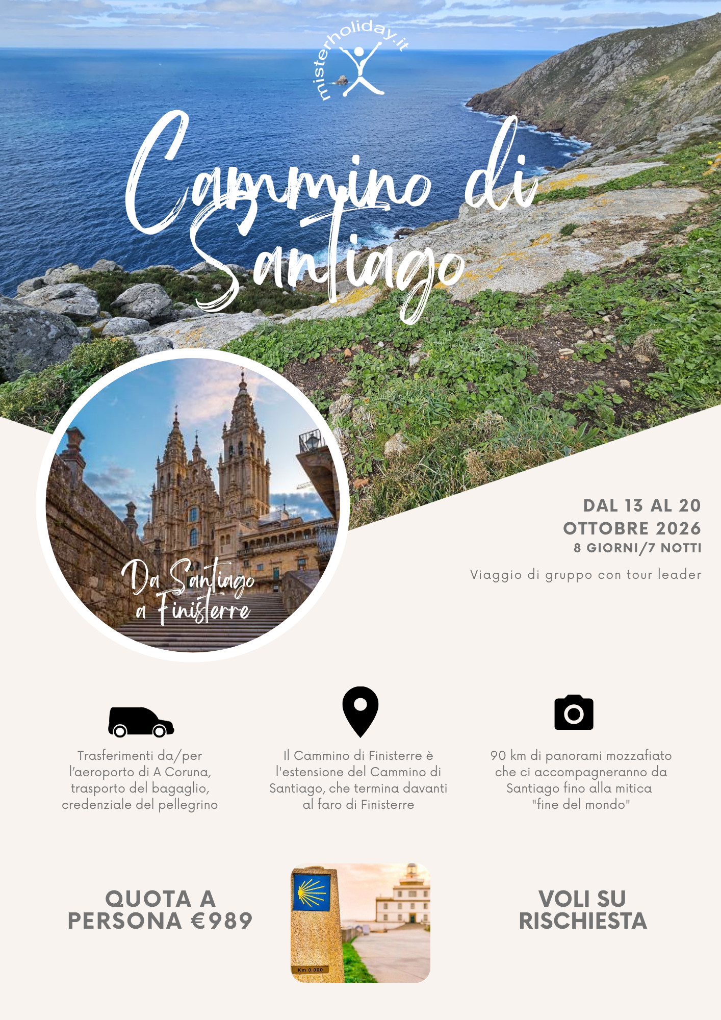 In seguito ho avuto la felice intuizione di propormi come tour leader per accompagnare piccoli gruppi a percorrere il Cammino di Santiago, un'esperienza che avevo fatto e che mi aveva tanto entusiasmato. Così è iniziata la mia collaborazione con un'agenzia viaggi di Pisa, alla quale mi sono appoggiata anche per la vendita dei viaggi.